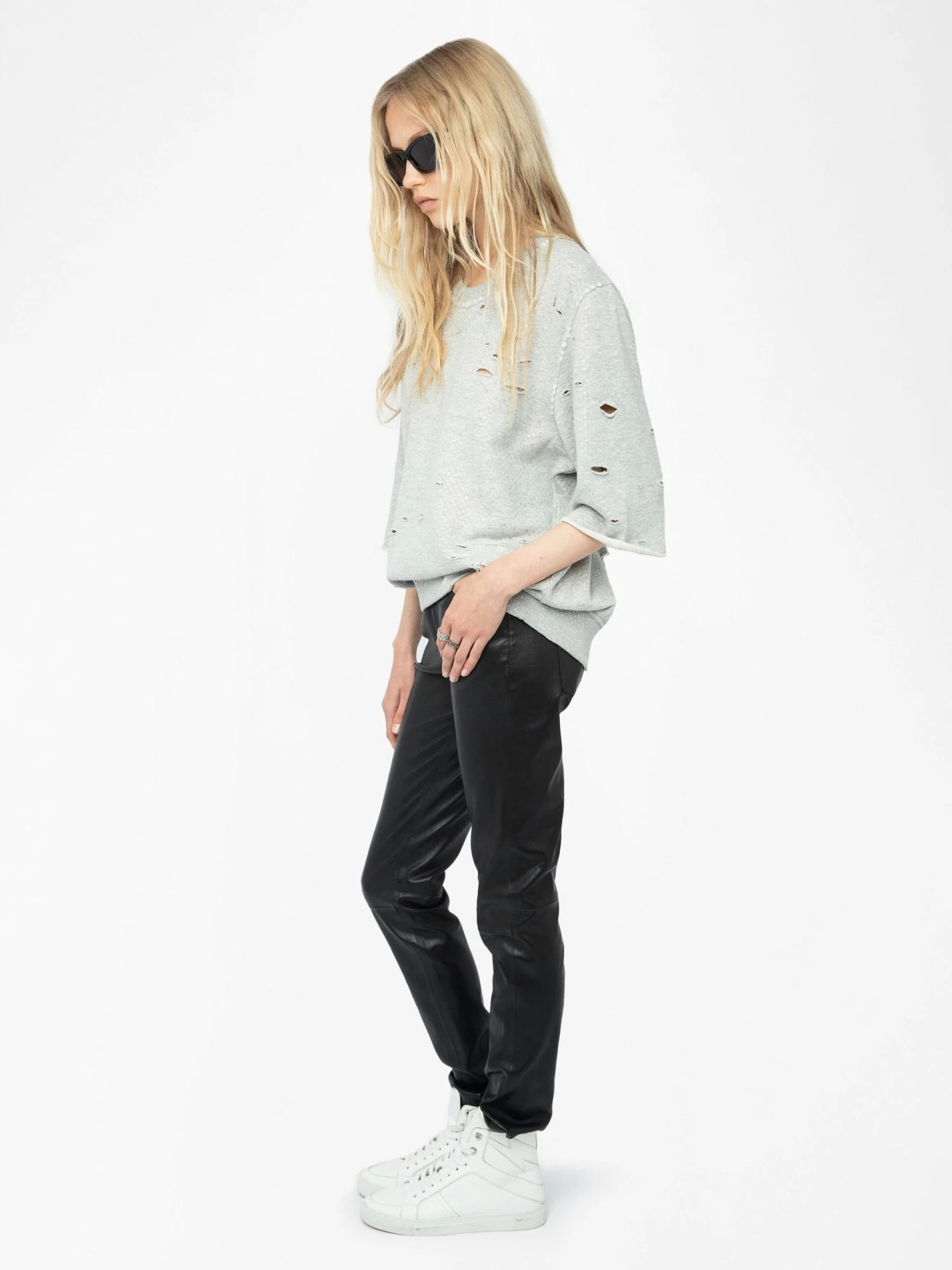 Zadig & Voltaire Edmond Diamanté Women’s Distressed Sweatshirt Gris Chine Clai