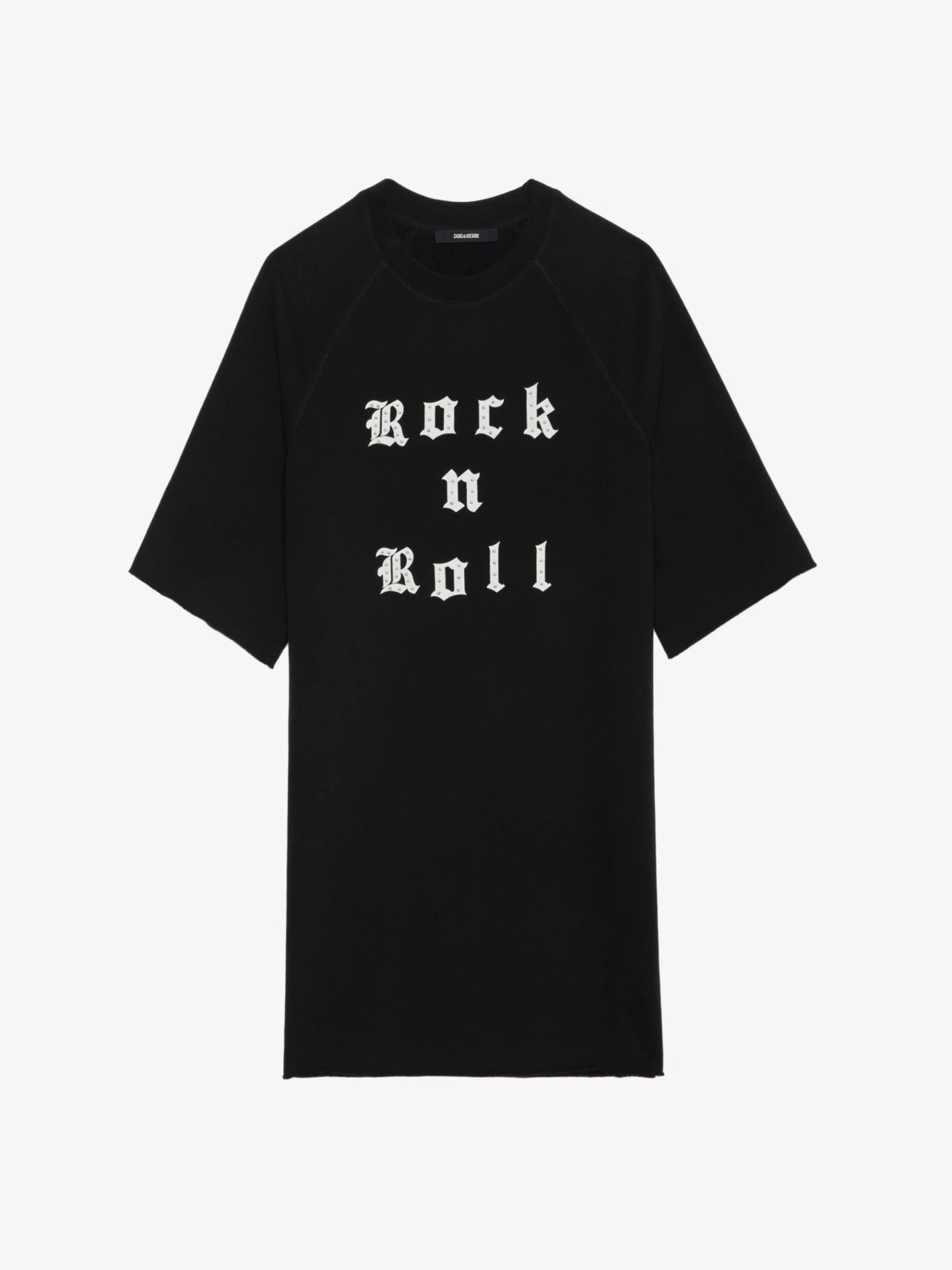-Embellished with a rhinestone “Rock’n’Roll” slogan for a glamorous punk touch
