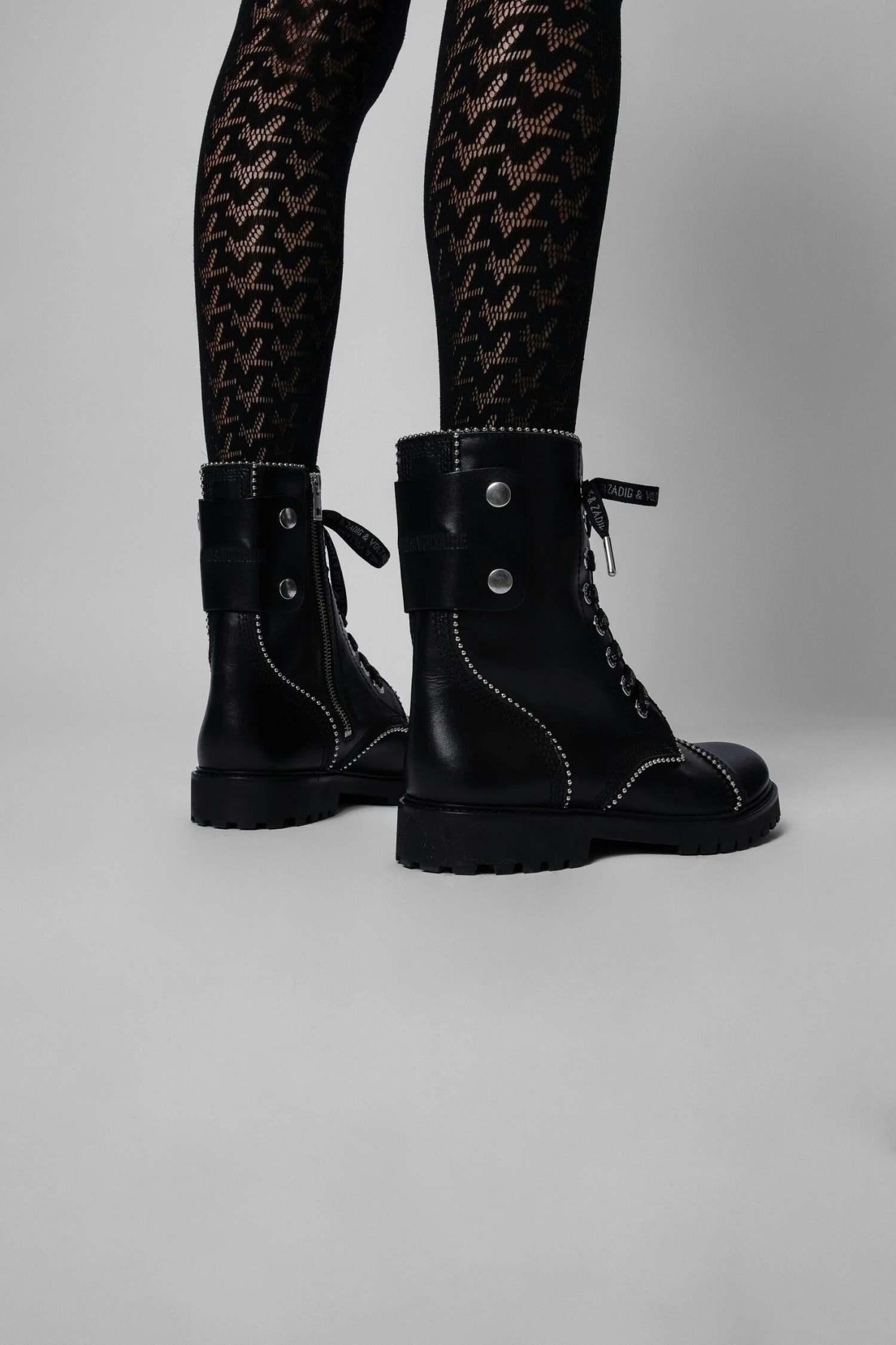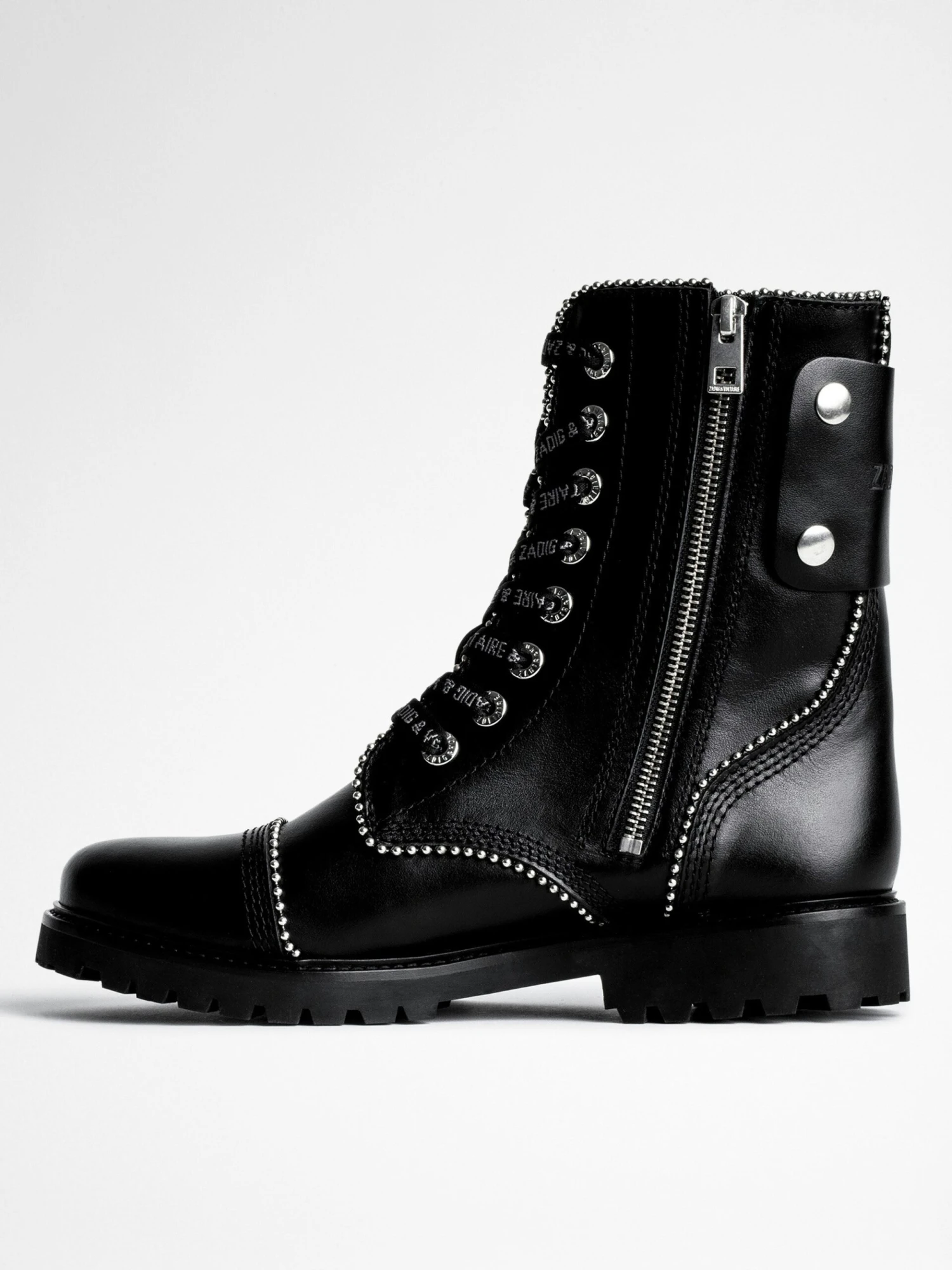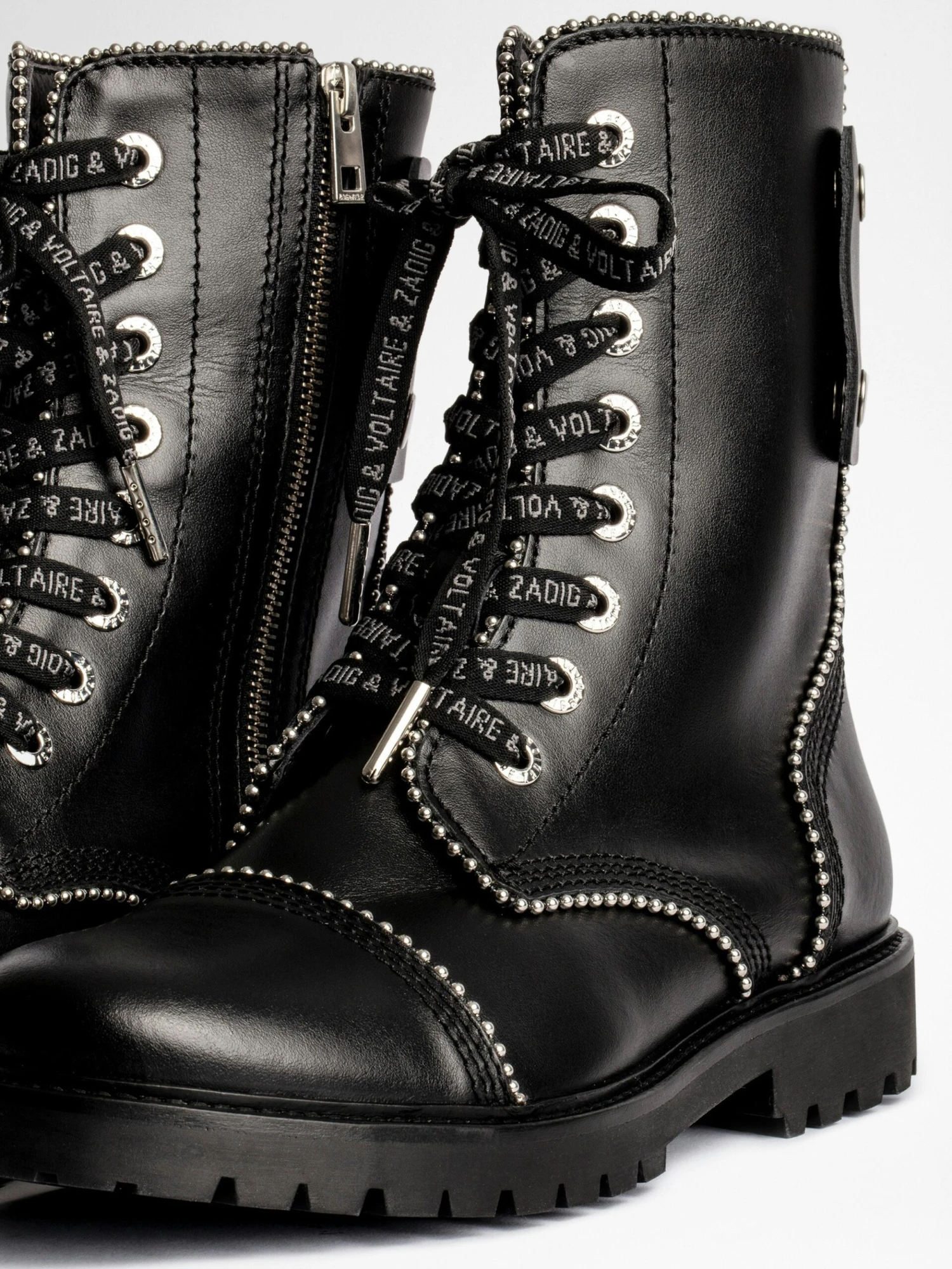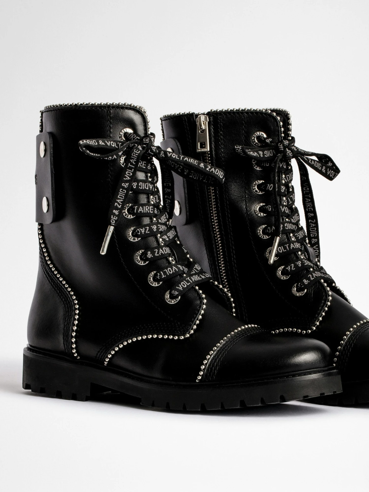 These high-top ranger boots, embellished with mini silver studs, have an intensely rock style. The laces feature a Zadig&Voltaire signature.