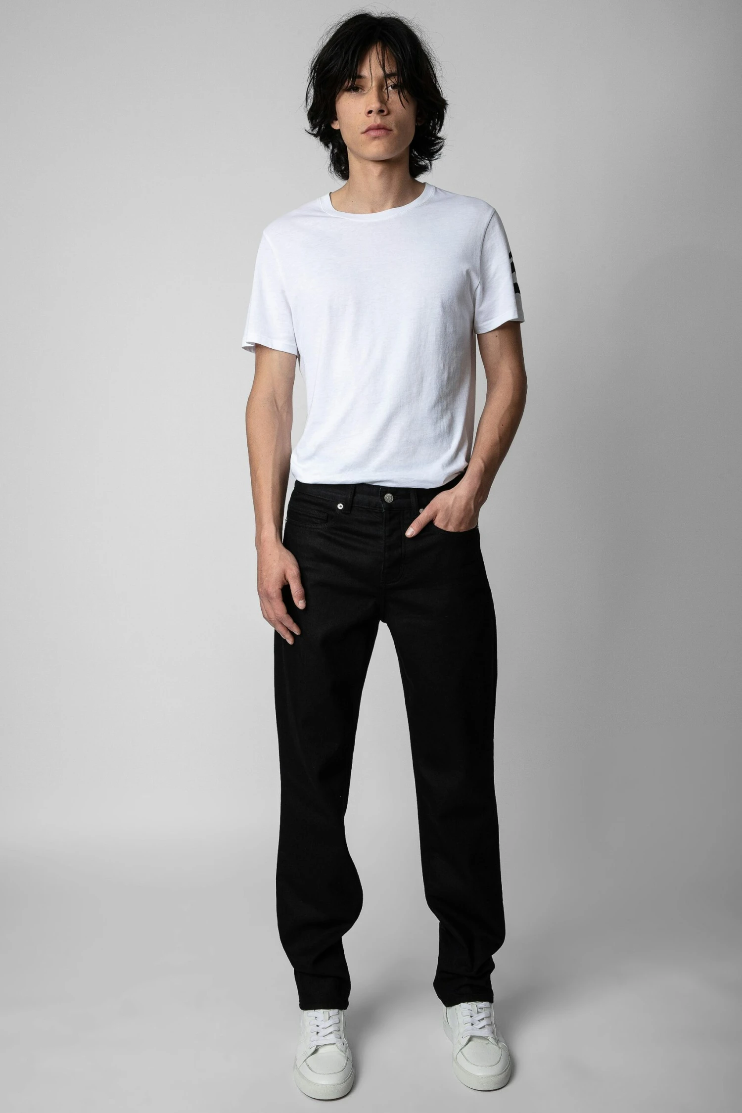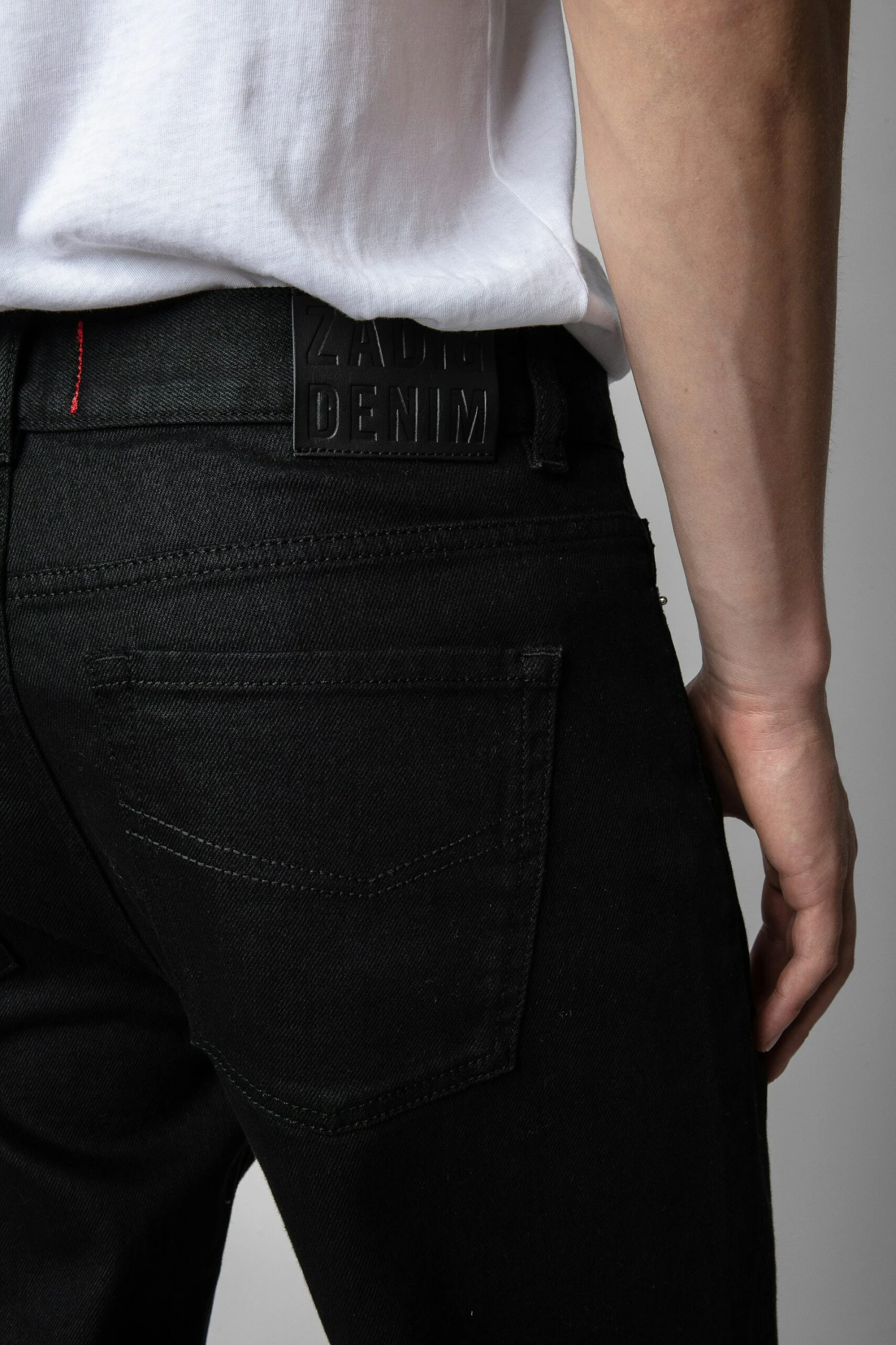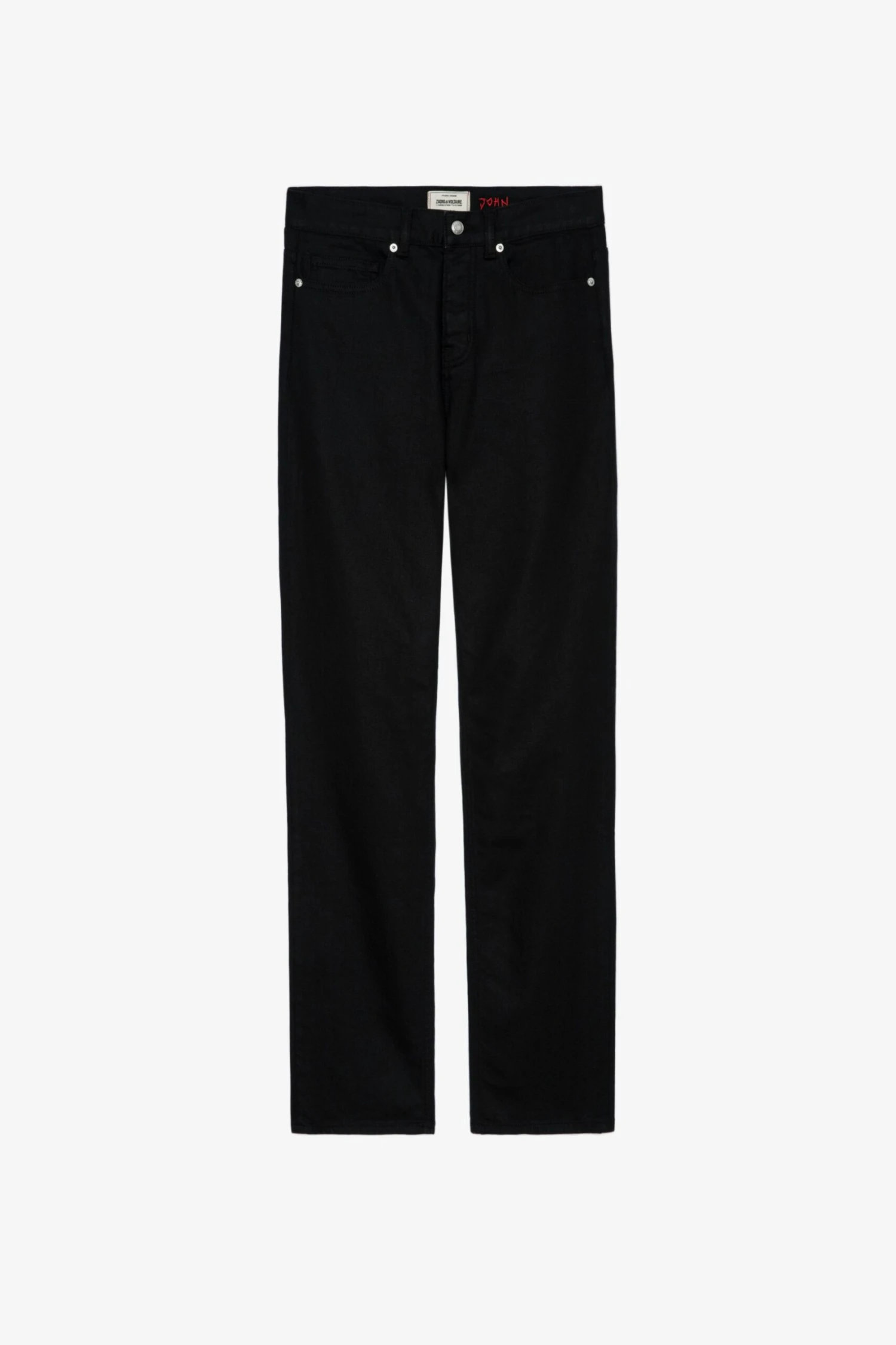 Wide-leg straight-cut black denim 5-pocket jeans.