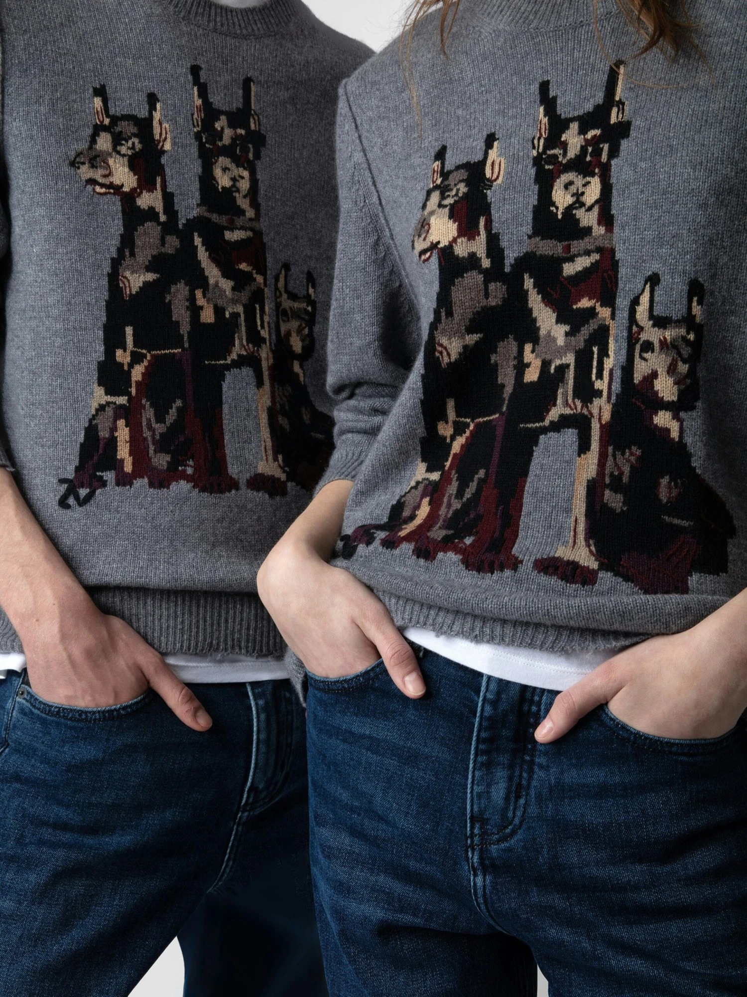 – Intarsia jacquard Doberman motif and pointelle ZV signature on the front