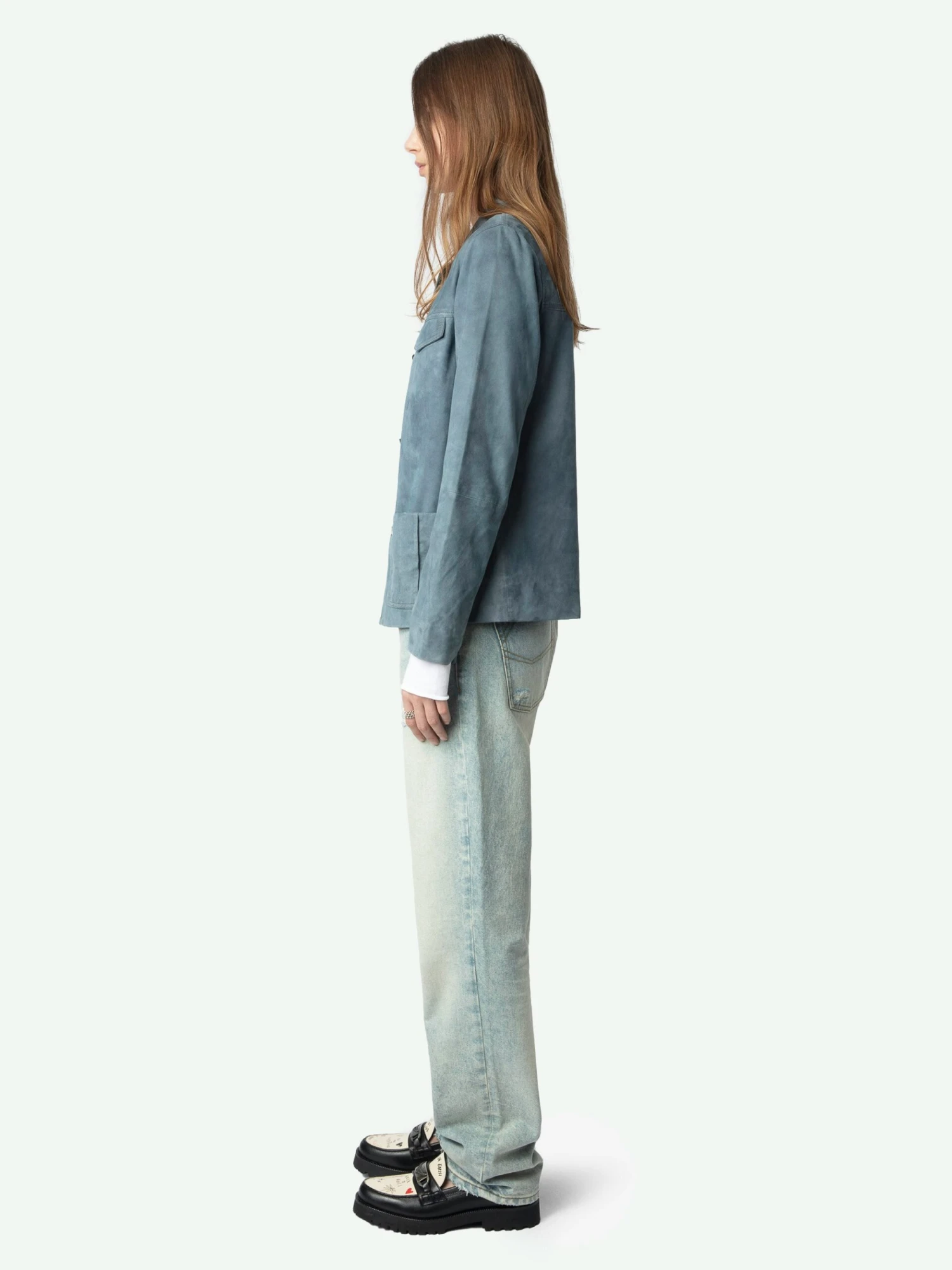 – Worker-style jacket in 100% suede leather