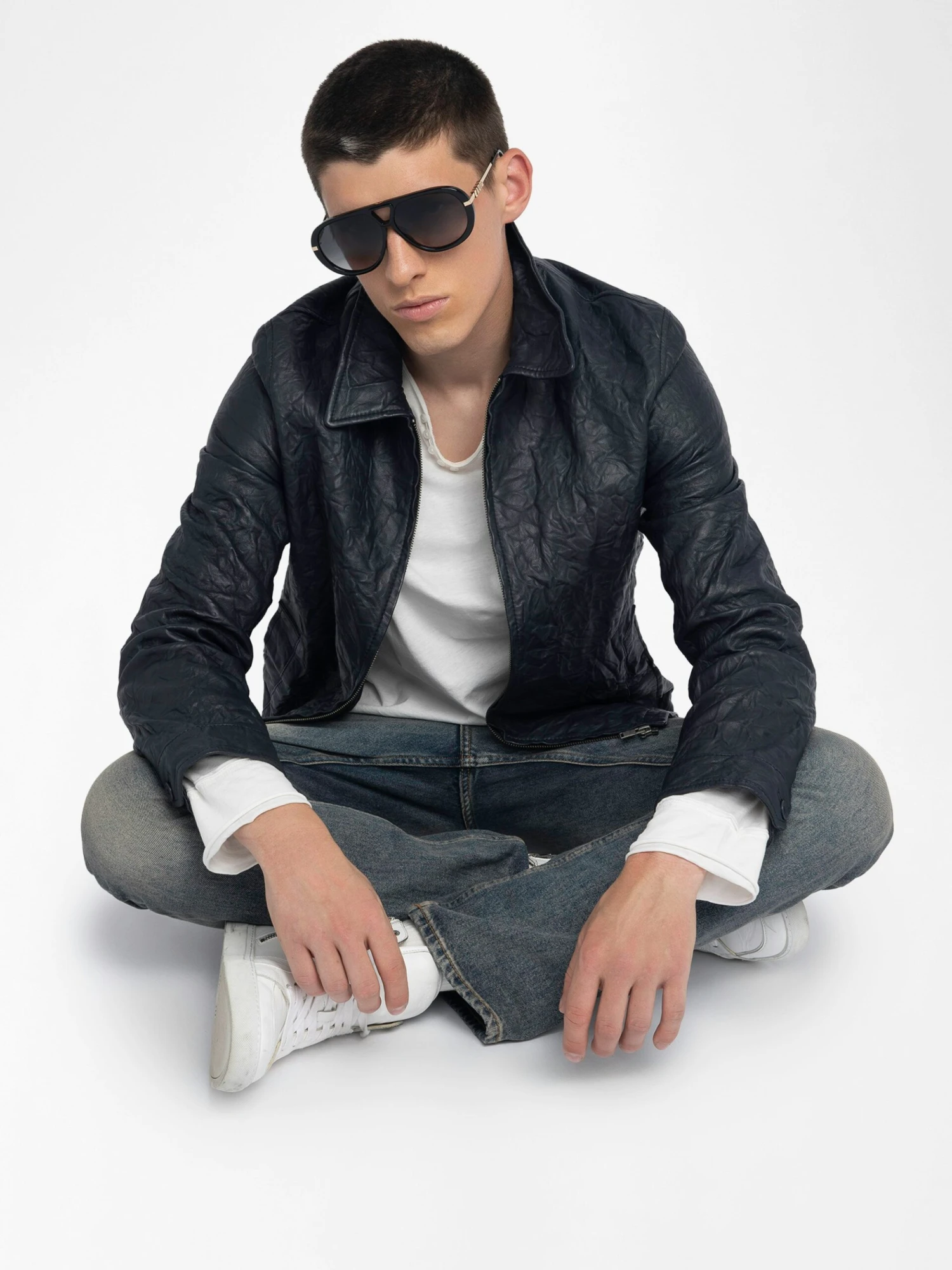 – Crinkled leather jacket