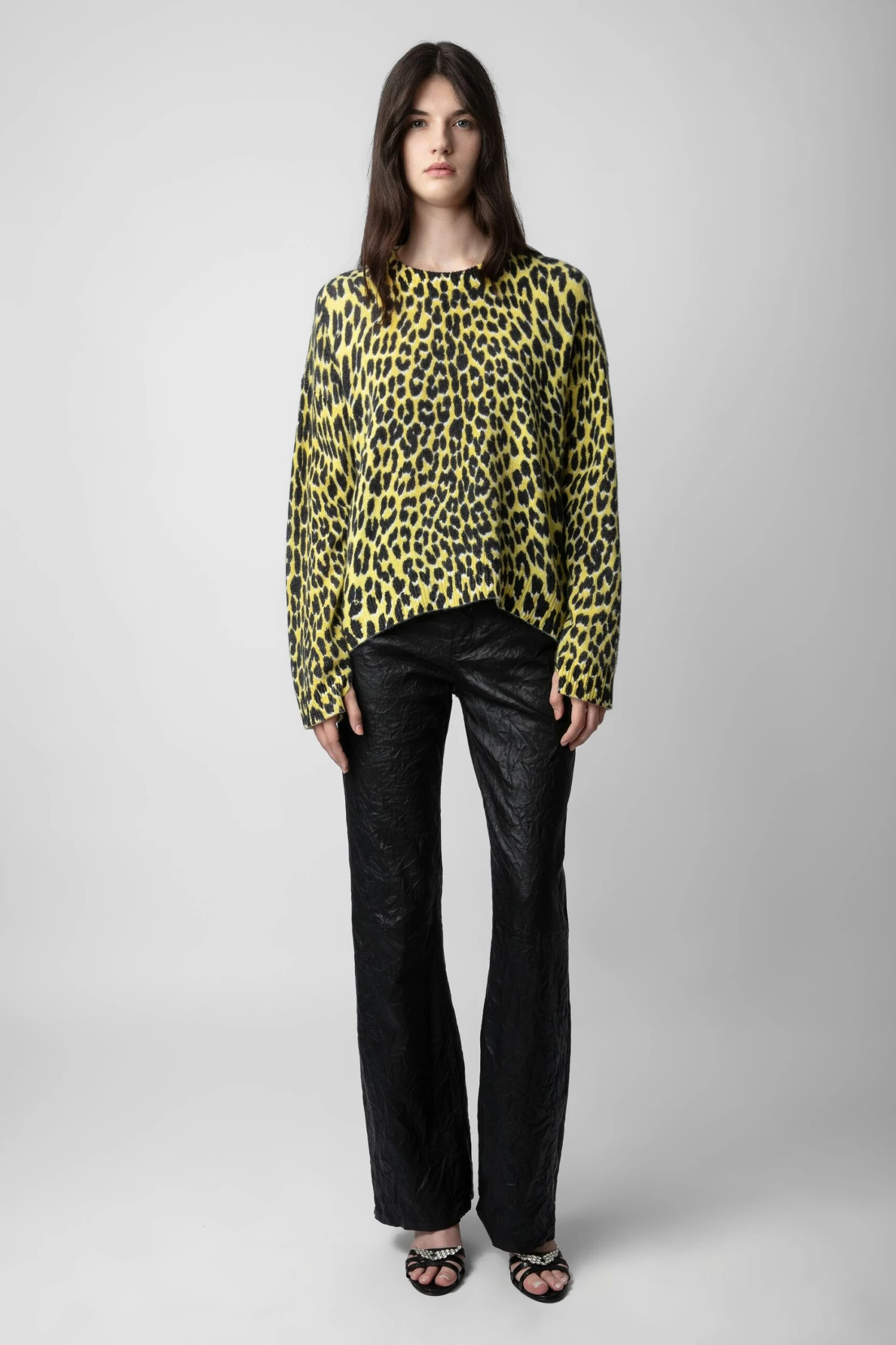 – Women’s Jonquil yellow leopard-print cashmere sweater
