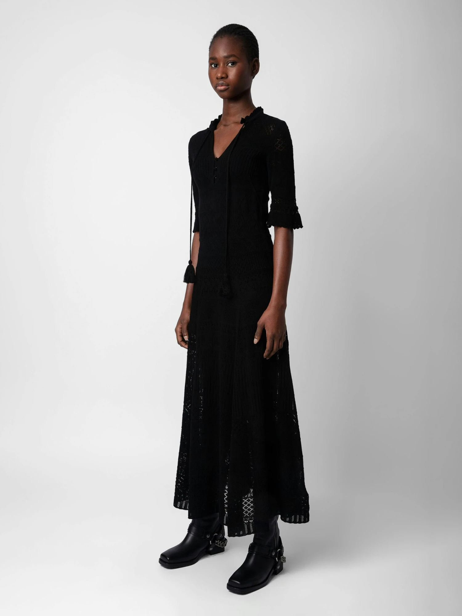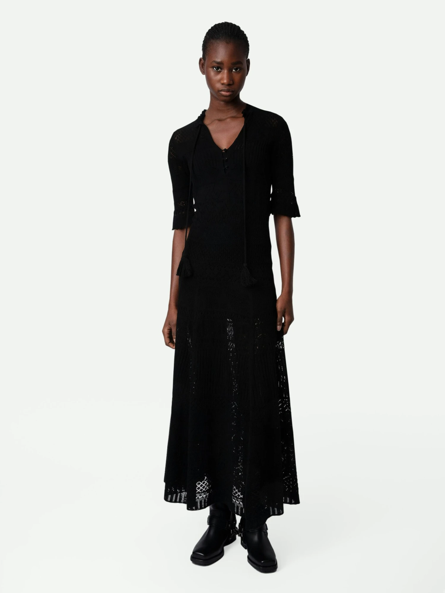 – Women’s black cotton crochet long dress