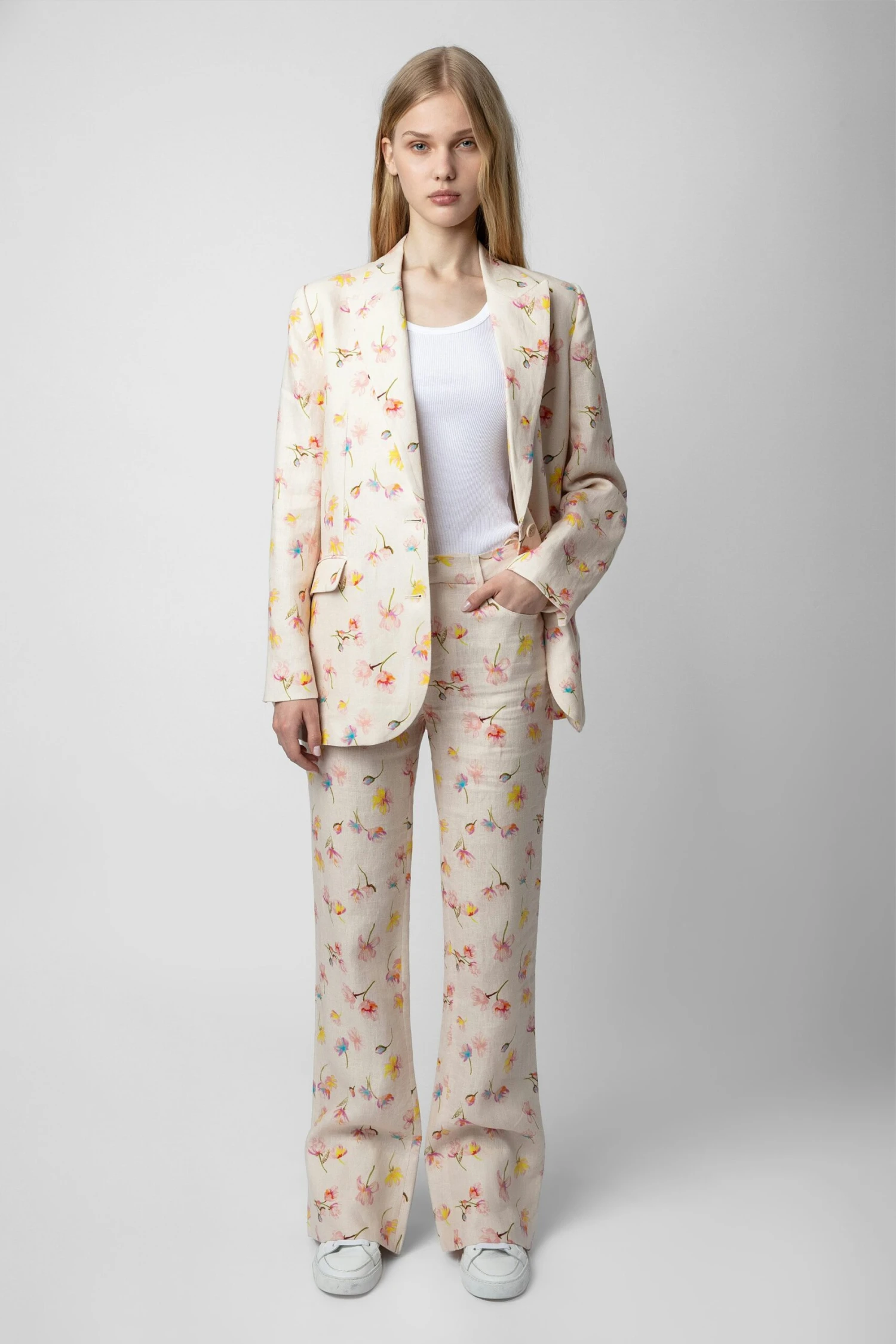 These tailored, flared pants are very stylish and feature this season’s must-have floral print. Go for the total look with the matching blazer.