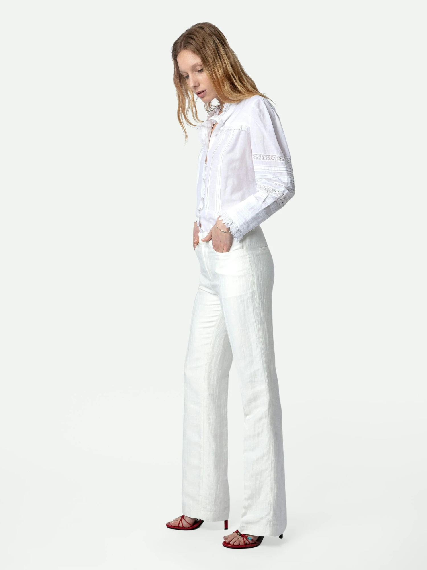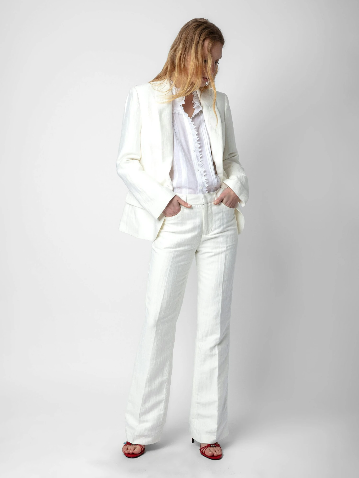 – Women’s white textured linen flared tailored pants