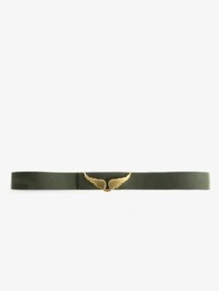– Gold buckle adorned with signature wings