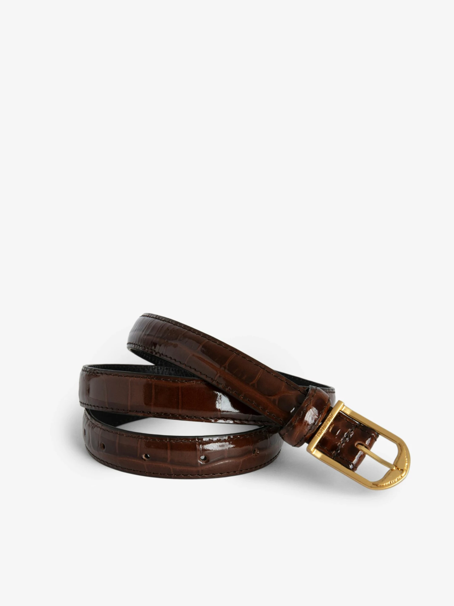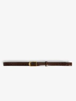 – Women’s belt in Bonny brown embossed faux crocodile glossy leather