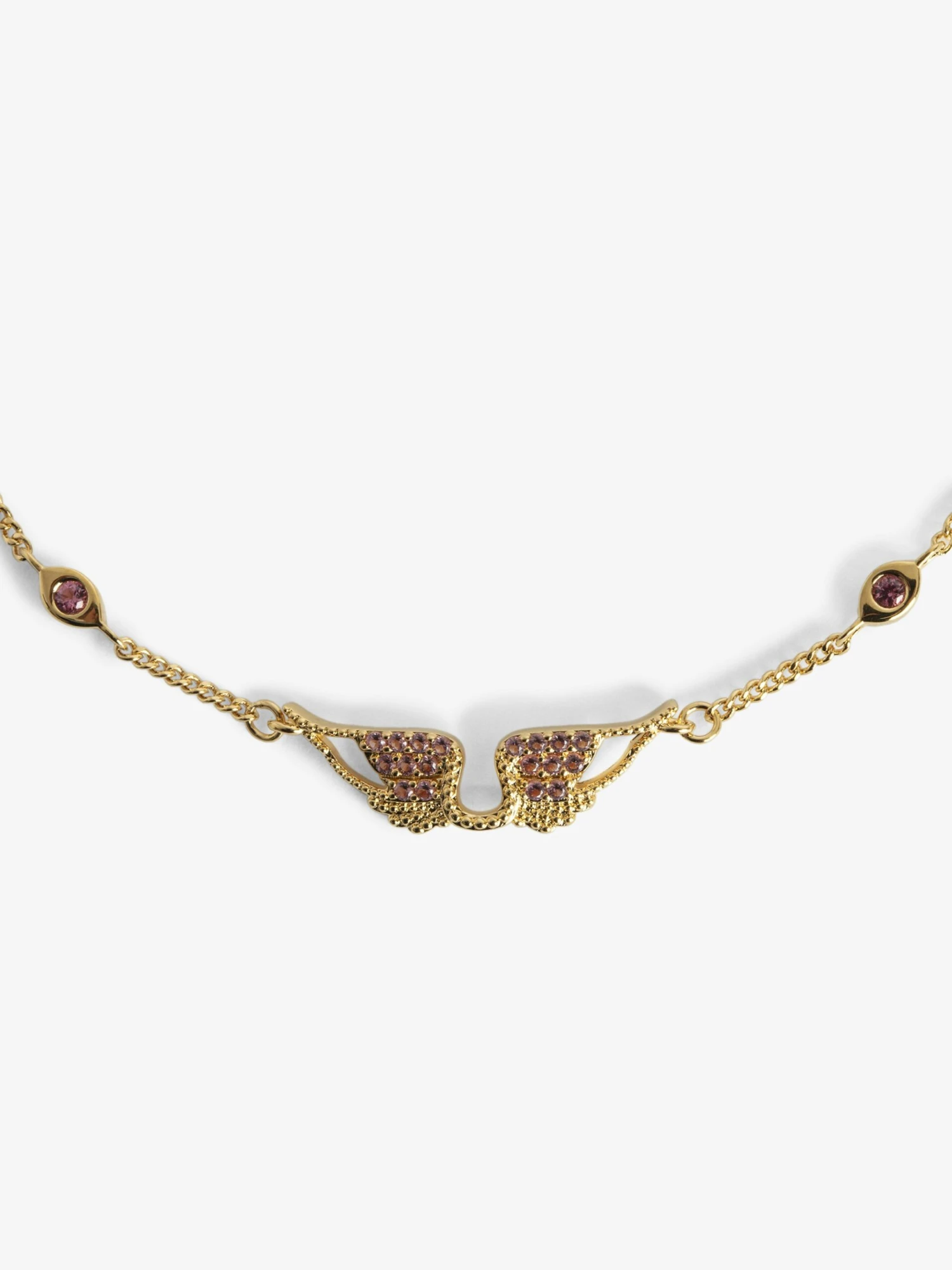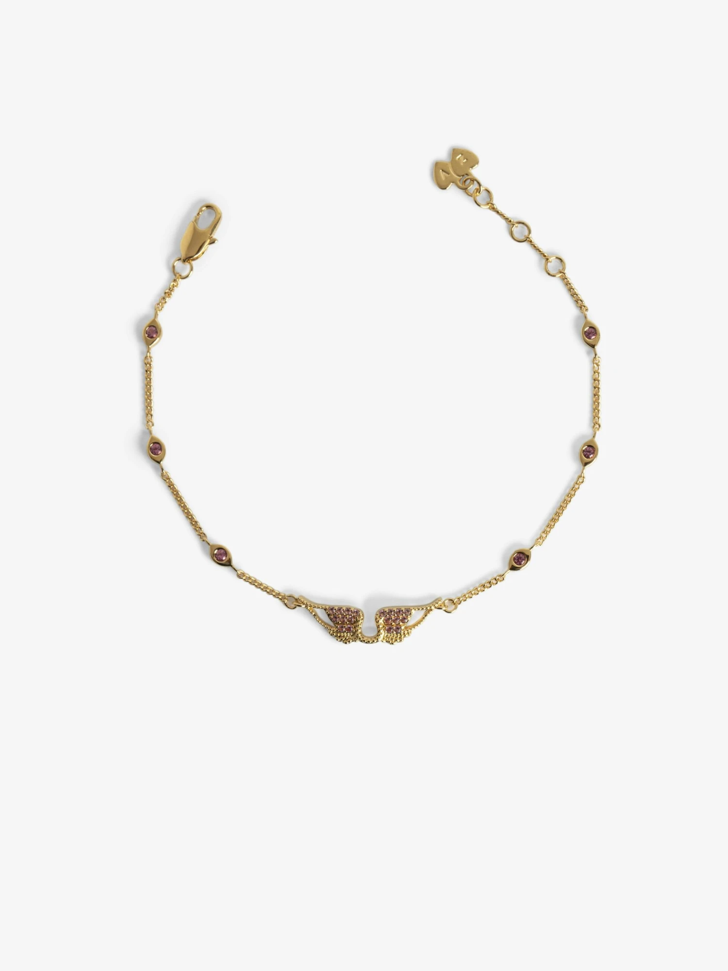 – Embellished with pink rhinestone wings and detailing