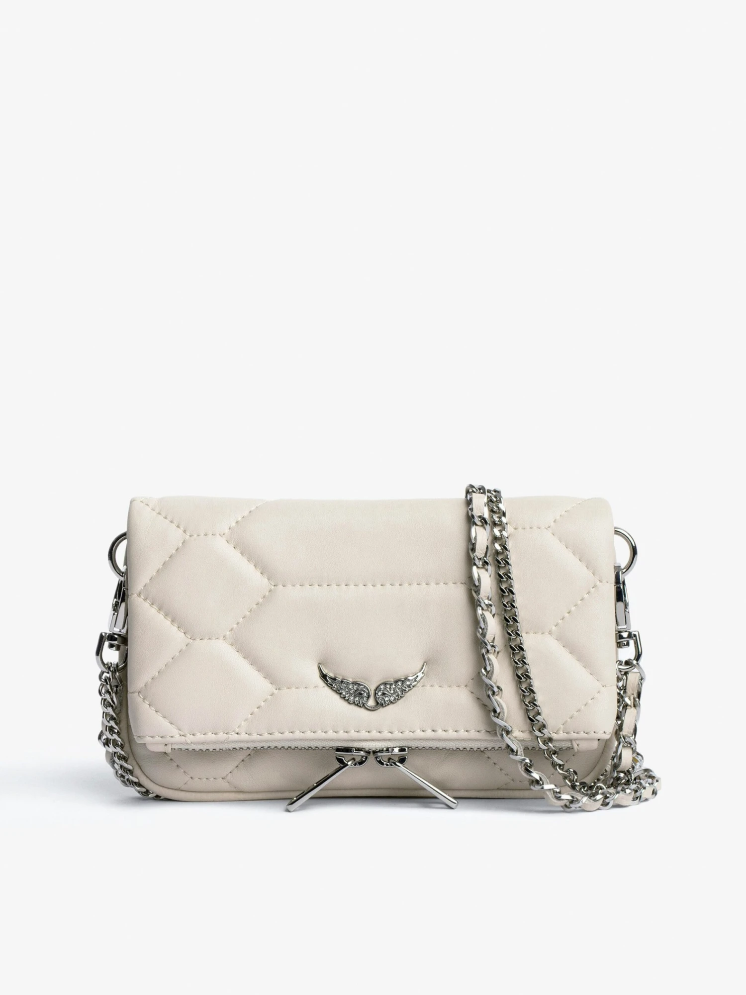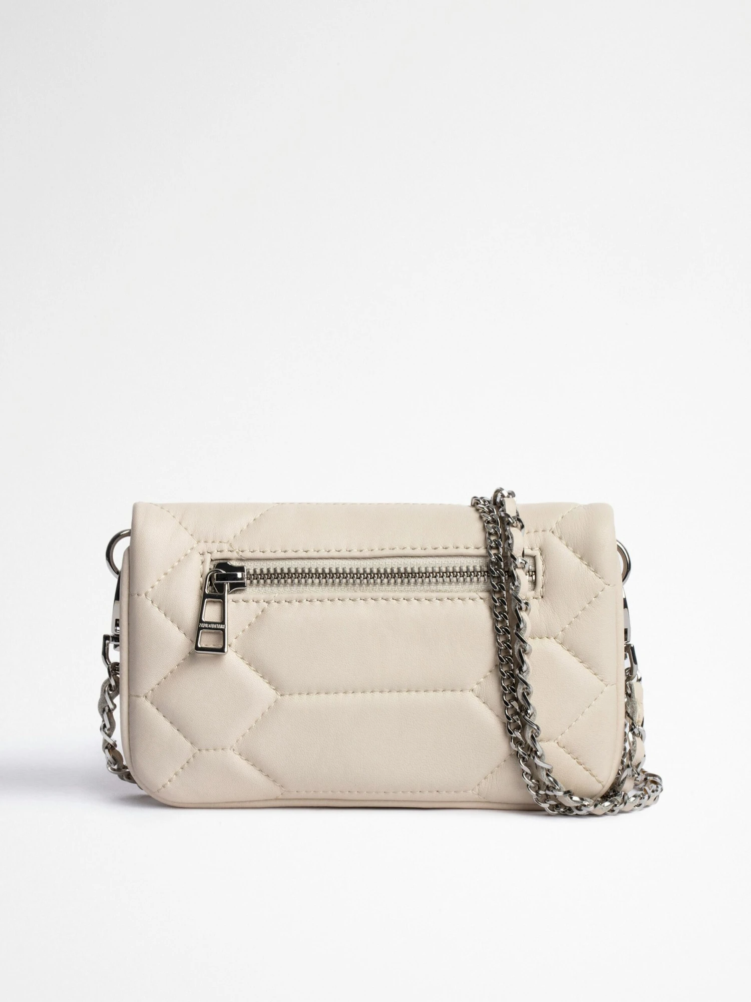 – Zadig&Voltaire Women’s Rock Nano clutch bag with chain in ecru quilted leather