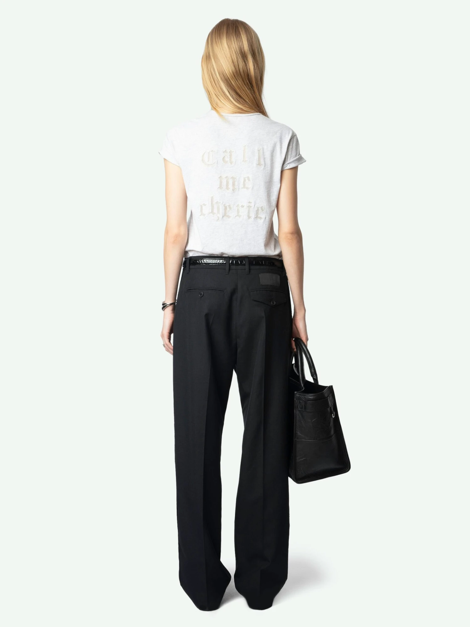 – “Call Me” fishnet embroidery on the back