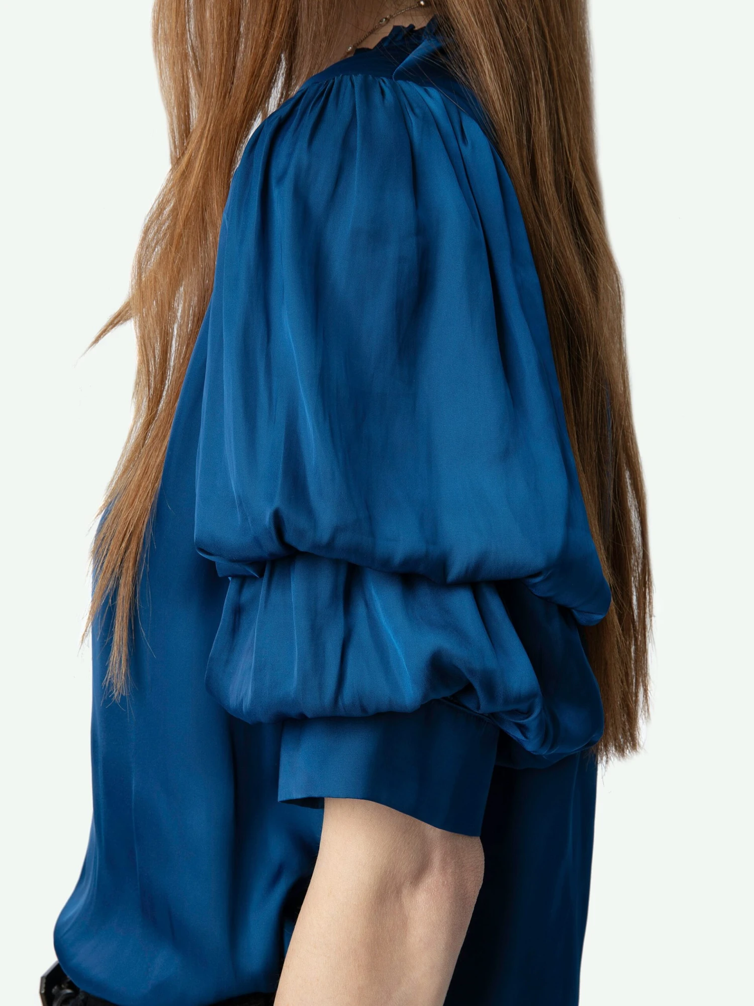 – Women’s Overseas blue flowing satin blouse