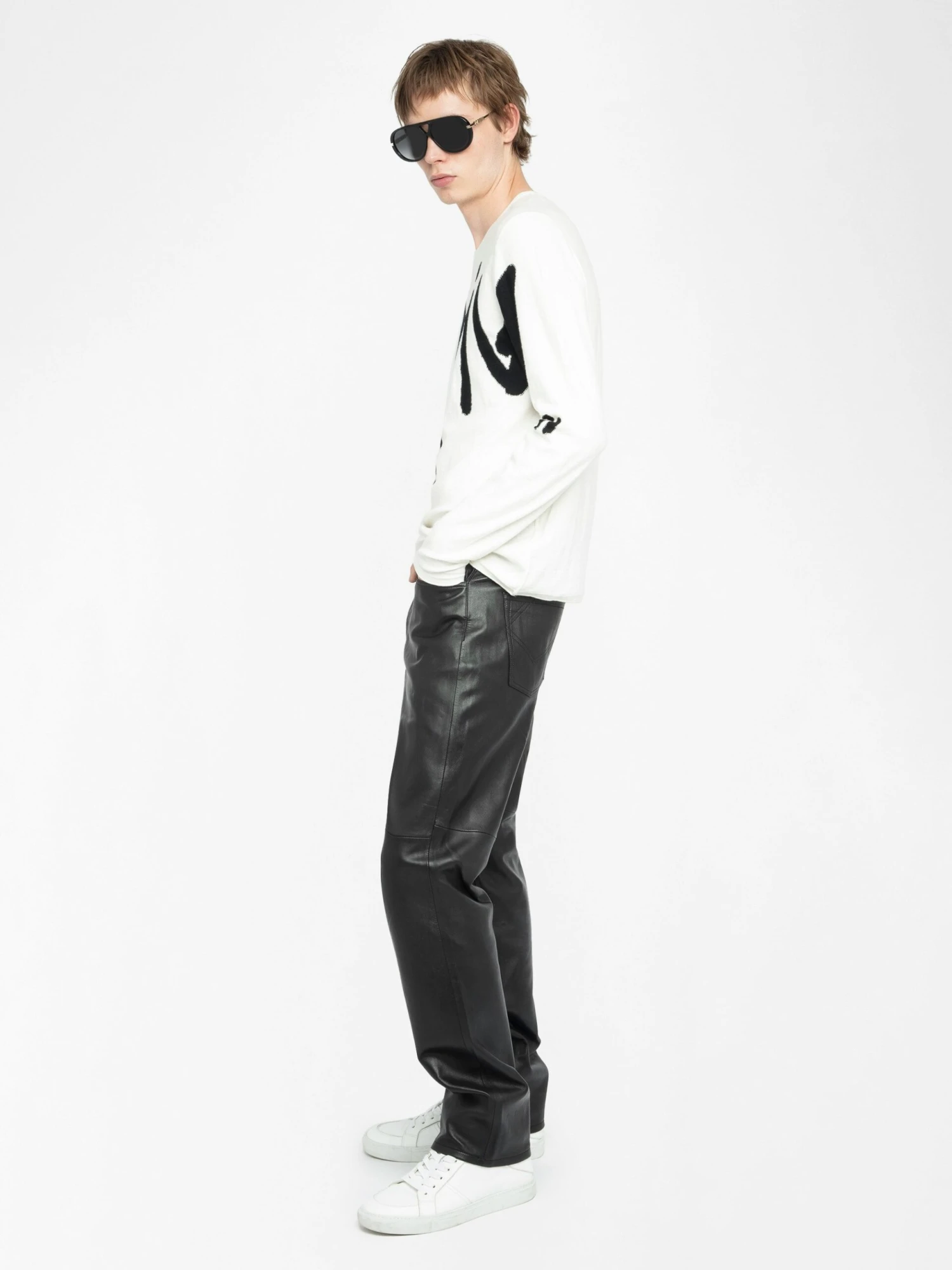 -Zadig&Voltaire Men’s navy blue feather cashmere sweater