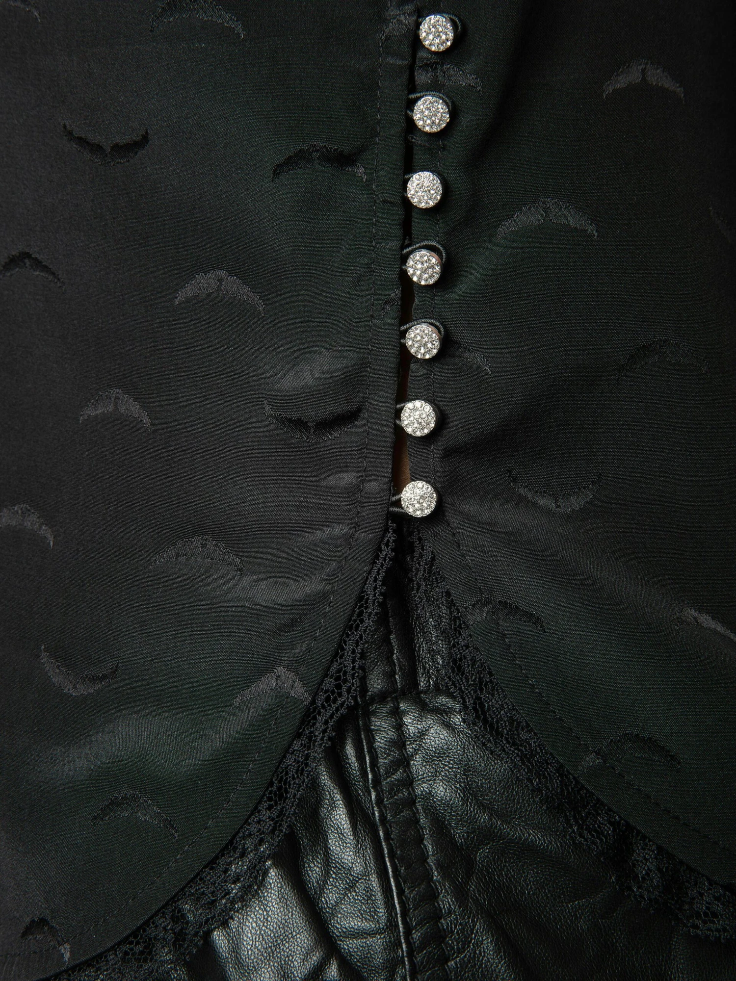 – Button fastening and side value placket with diamanté jewel values