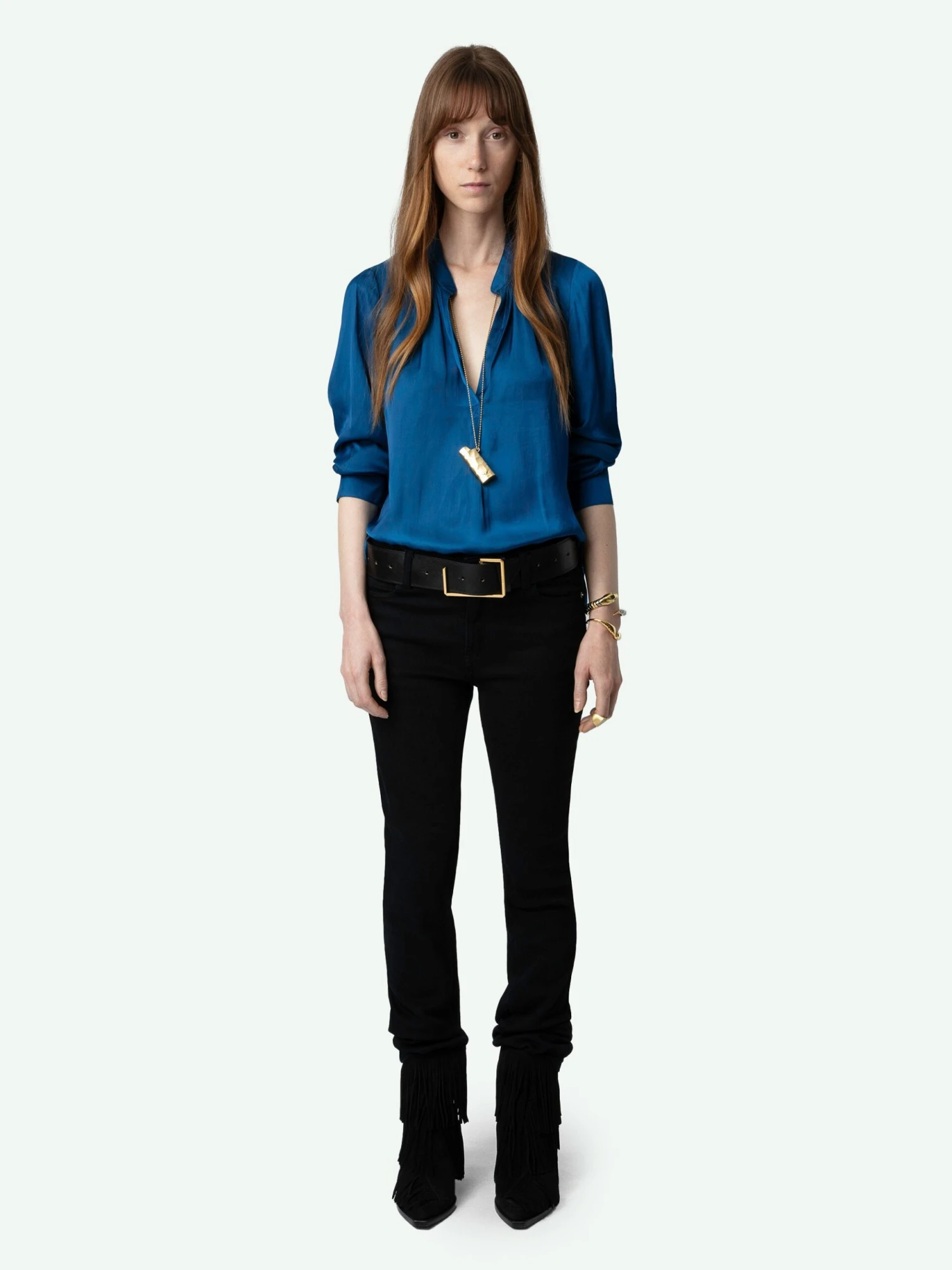 Zadig & Voltaire Tink Emerald Green Satin Blouse Overseas