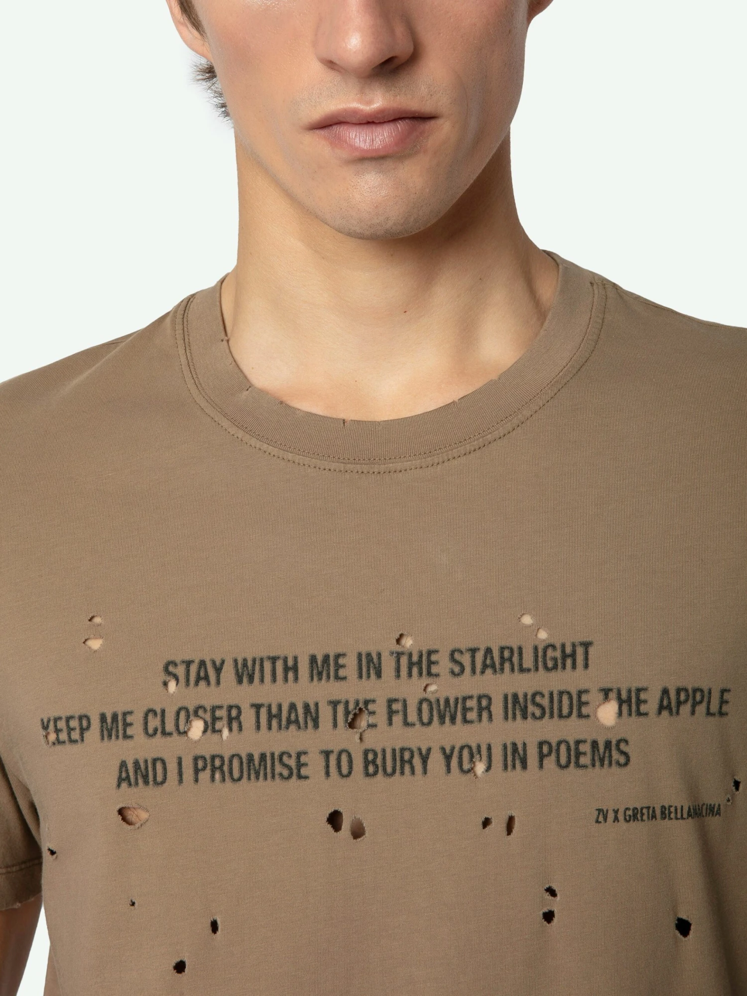 – Greta poem printed on the front and distressed details
