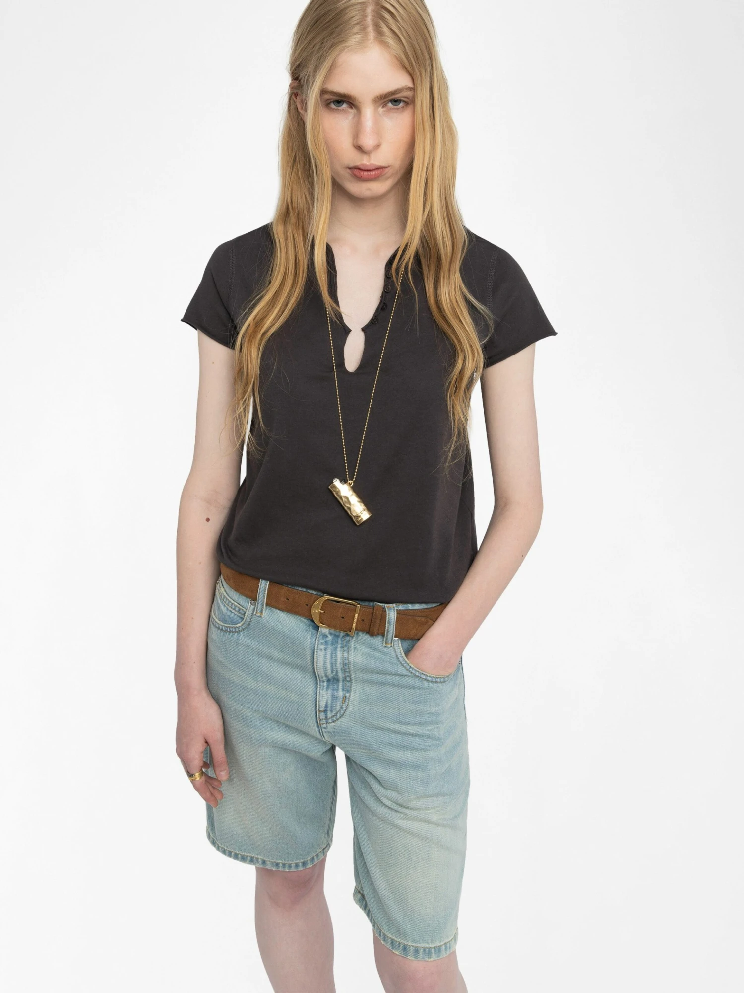 – Henley t-shirt collar with 5 values