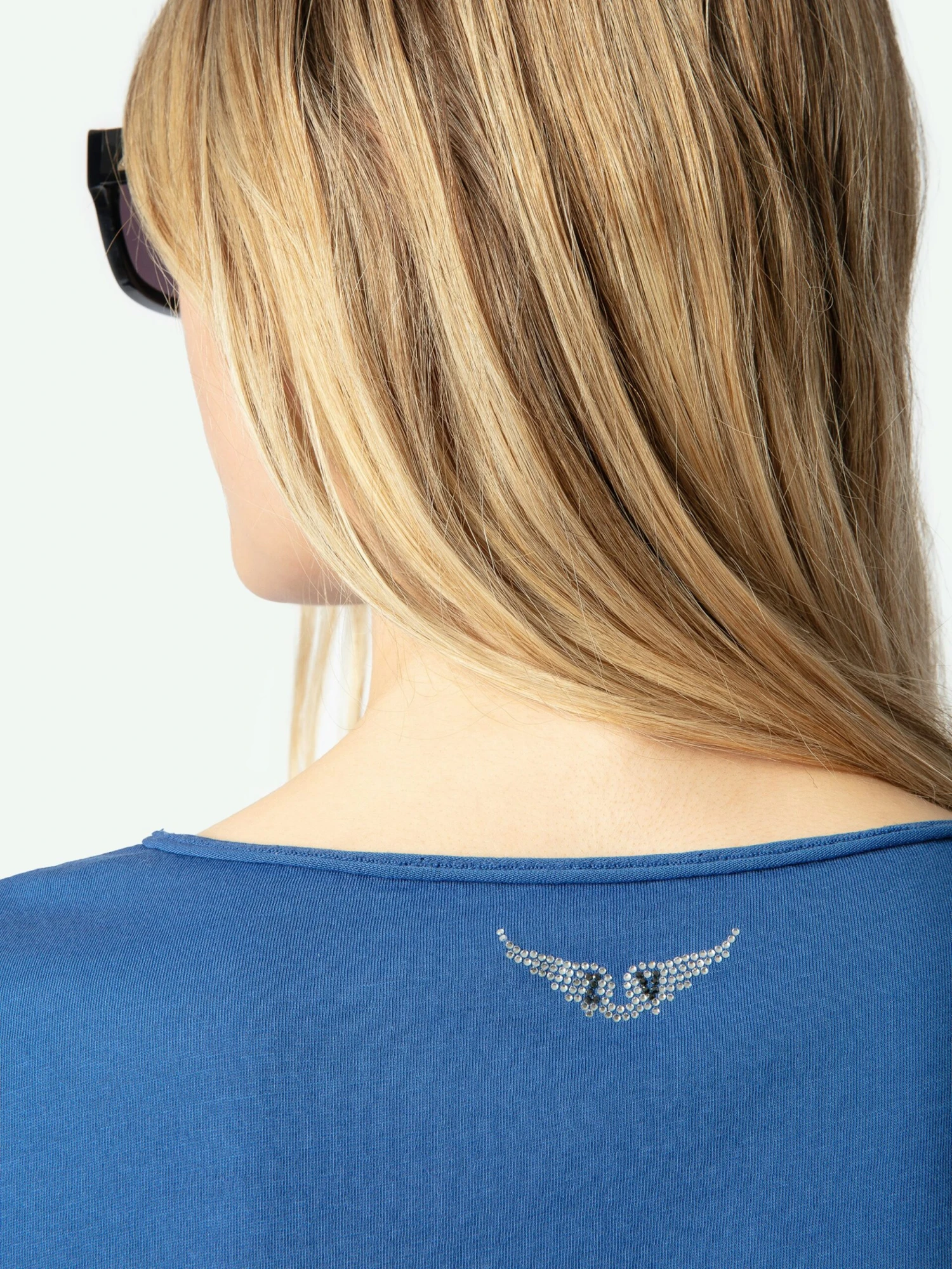 – Signature rhinestone-embellished wings on the back