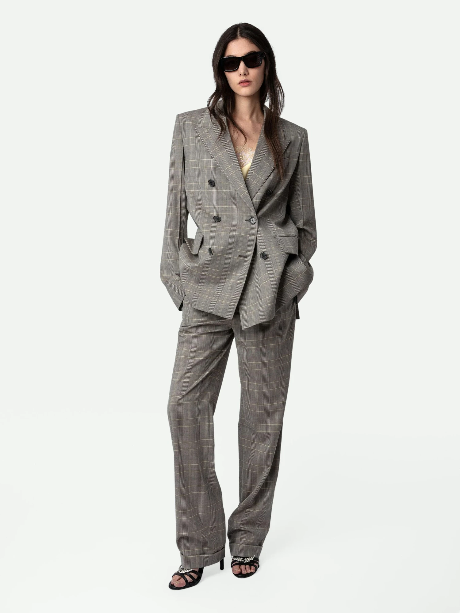 – Women’s grey oversized, straight-cut wool blazer