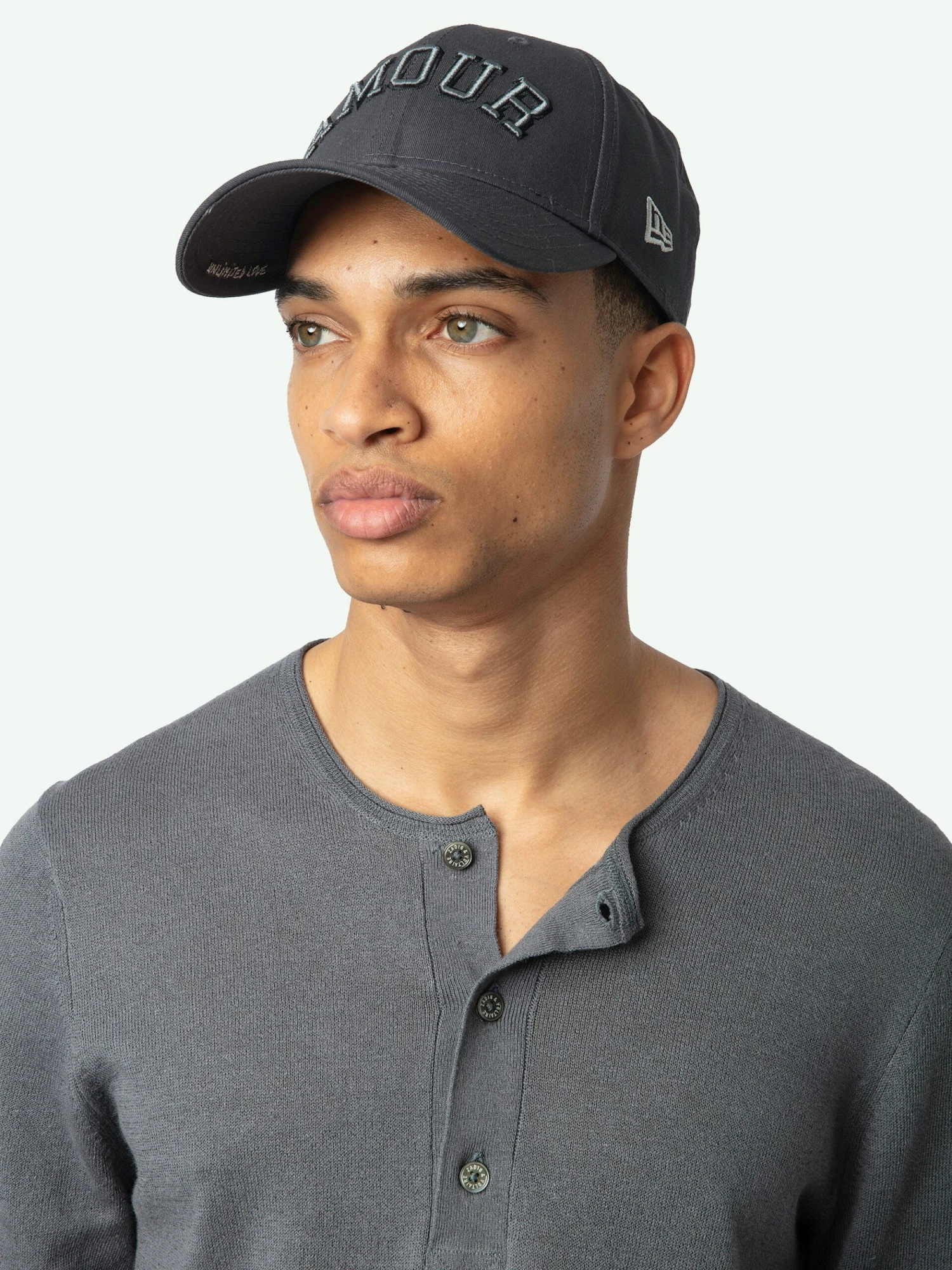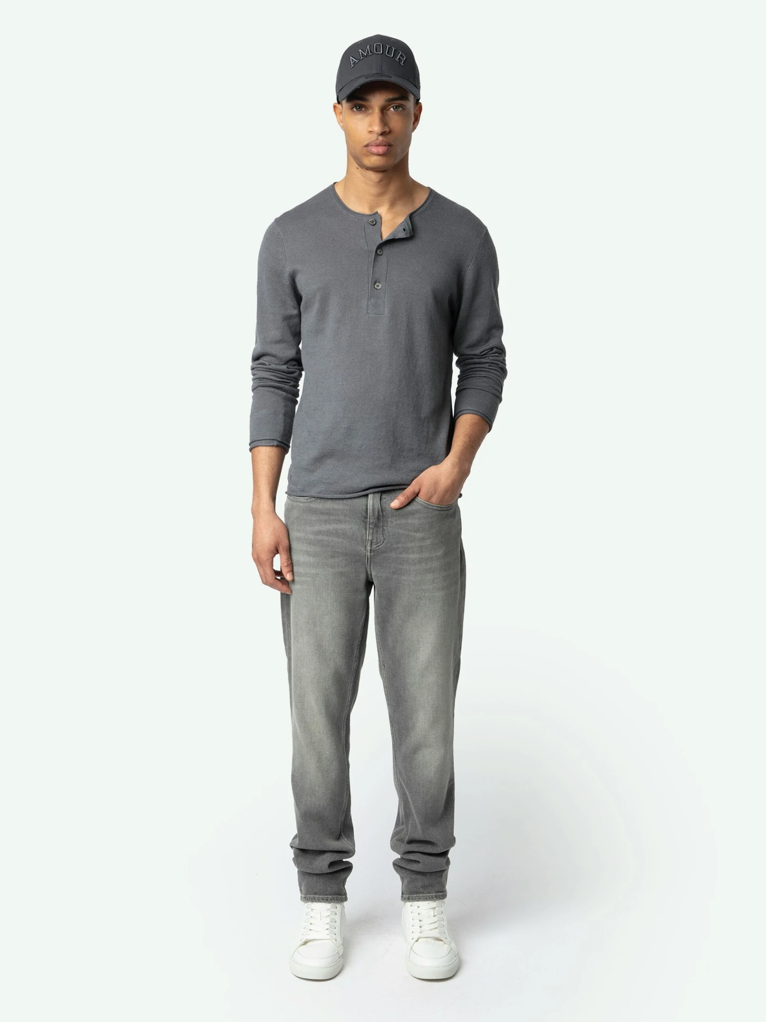 – Buttoned round neck