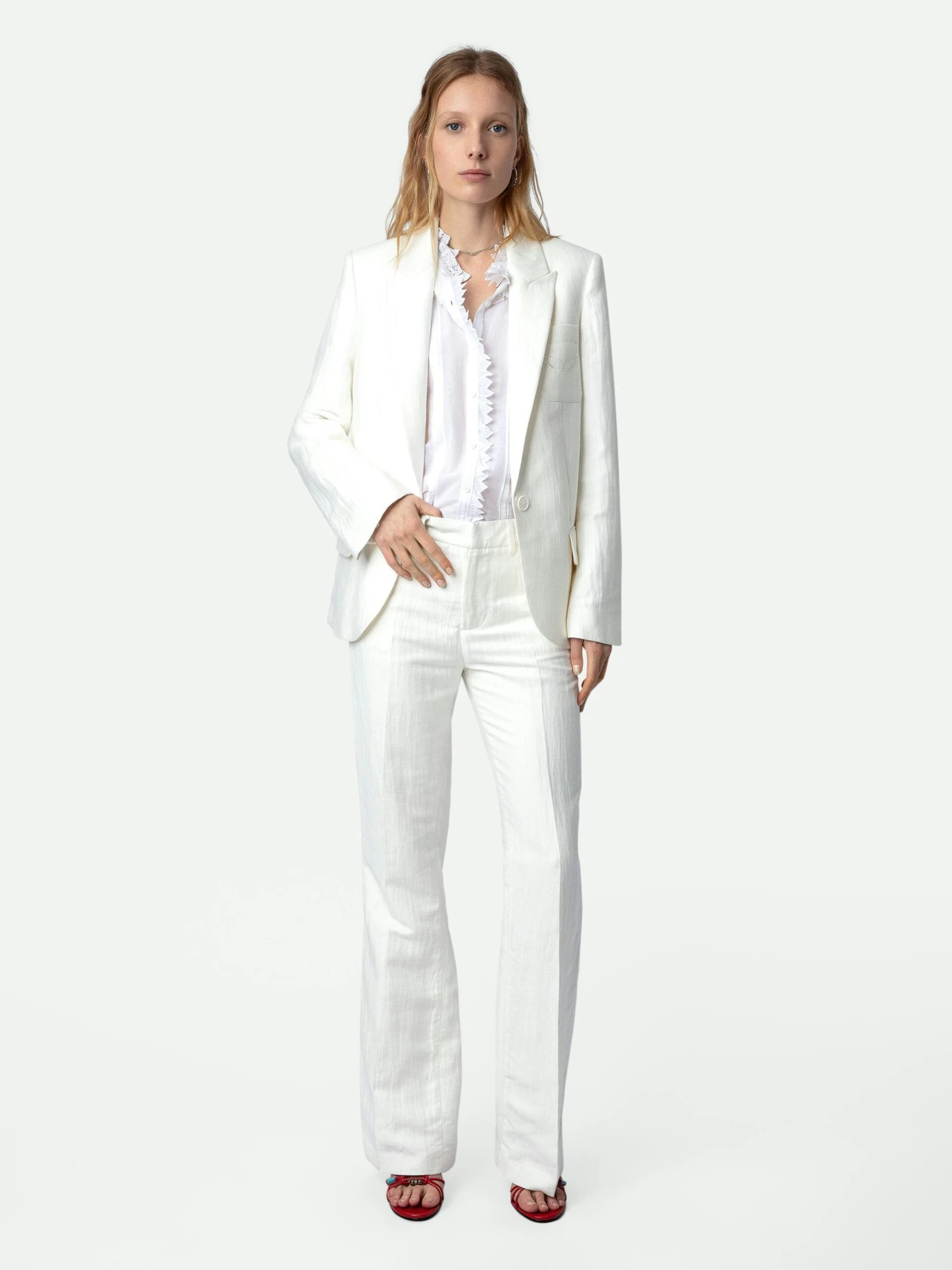 – Women’s white straight-cut blazer