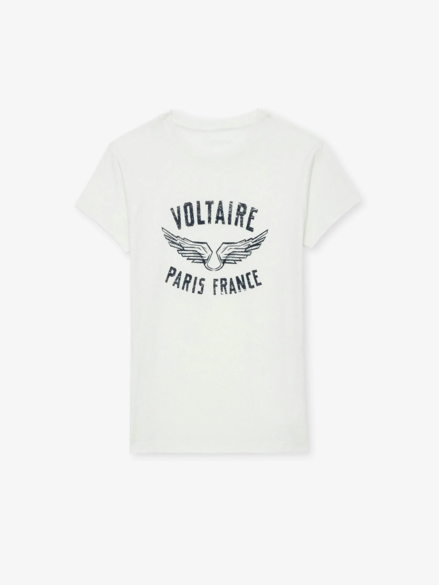 – Voltaire print with distressed effect and wings on the front
