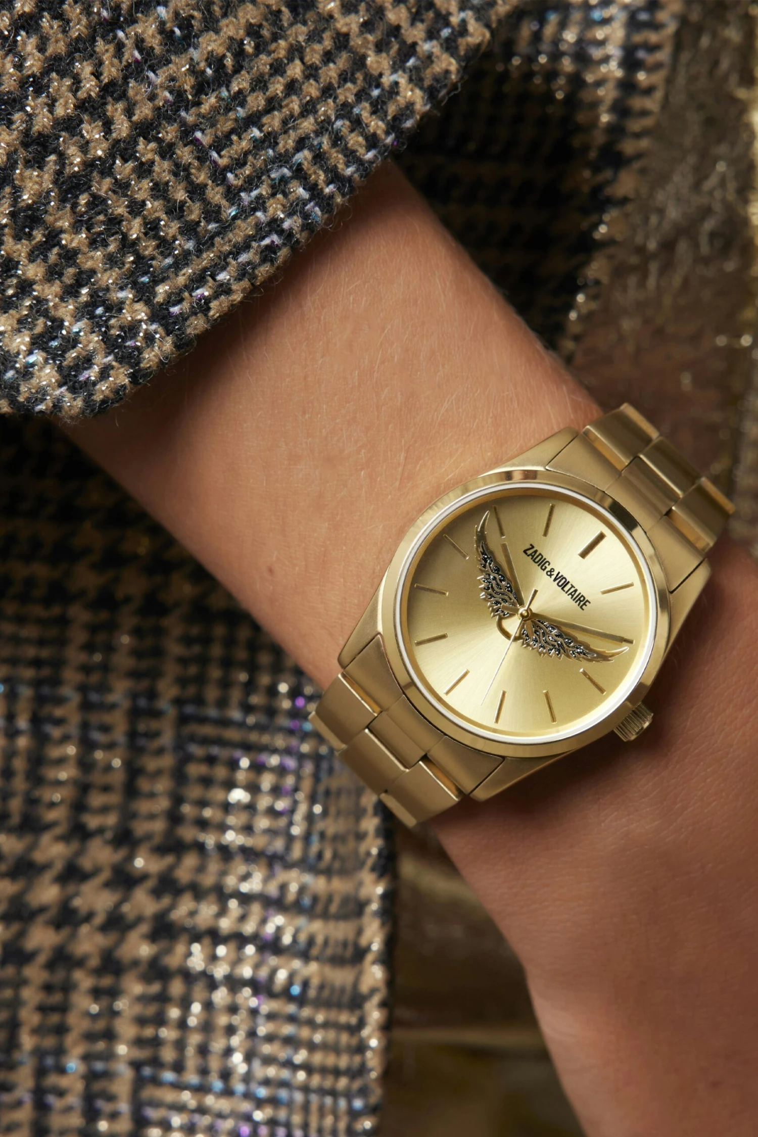 The Fusion watch is a truly iconic piece from the Zadig&Voltaire brand, and this season it is available in golden steel with a gold dial and crystal wings.