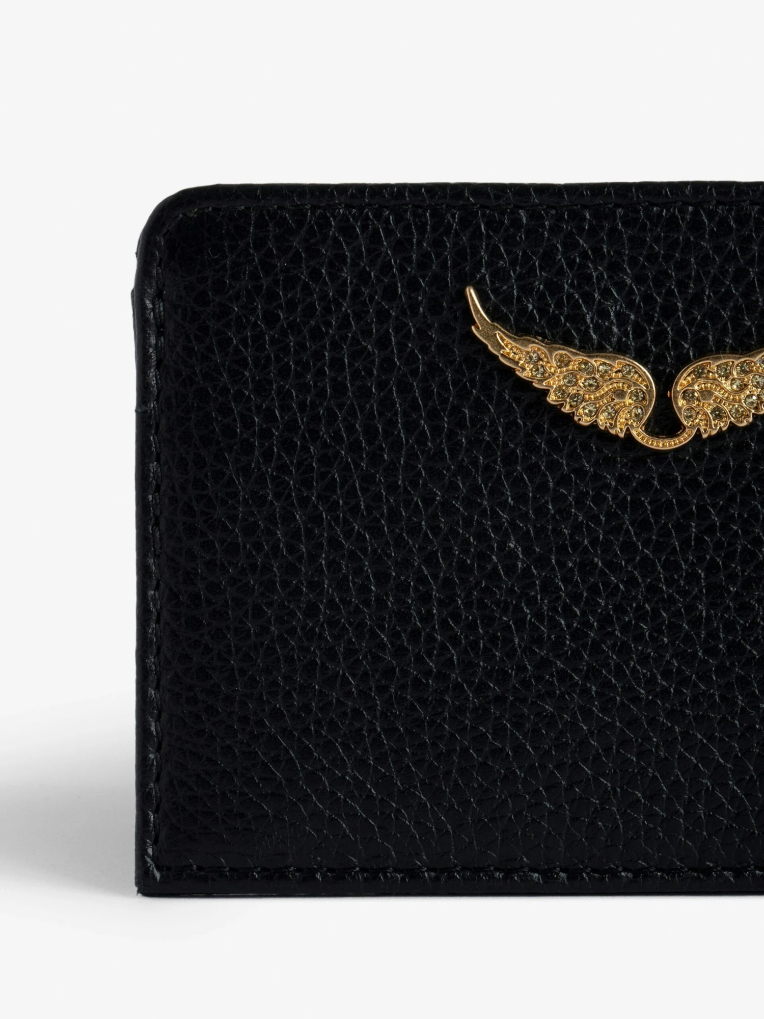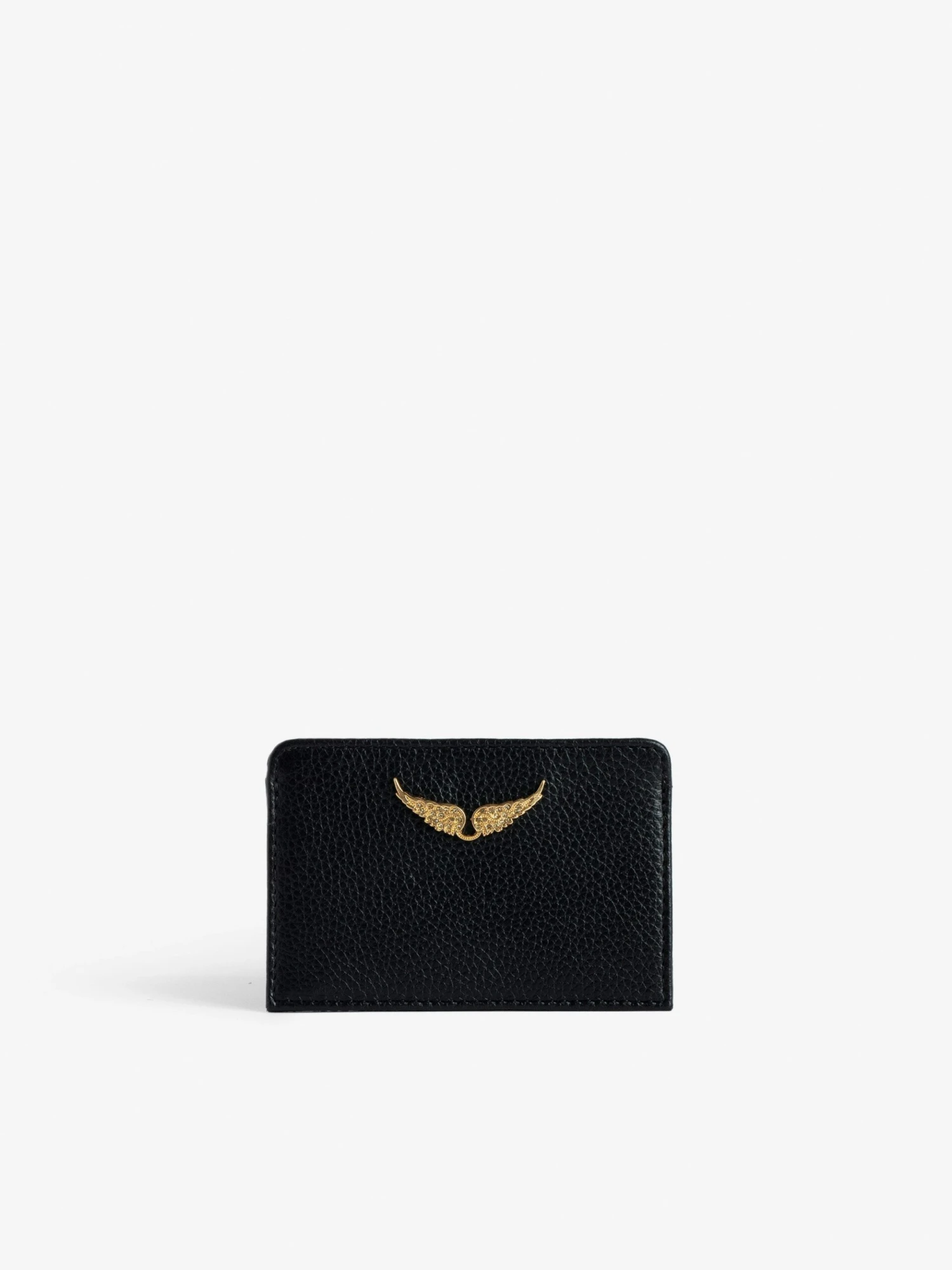 – Zadig&Voltaire women’s leather card holder in black and gold grained leather